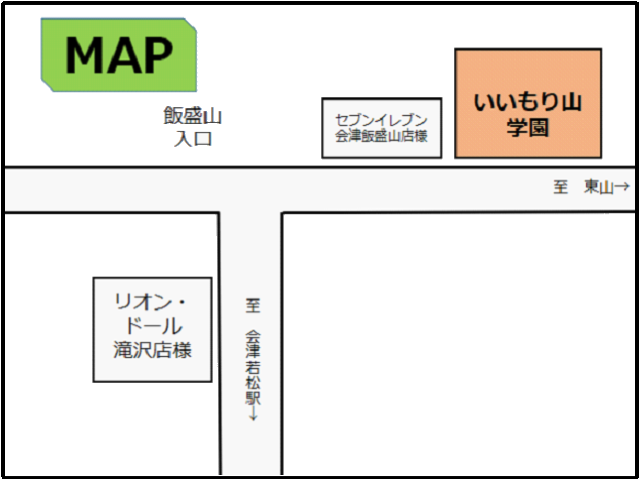 お問い合わせ お問い合わせは、下記にて承っております。 いいもり山学園 幼児部・学童部 〒965-0007 福島県会津若松市飯盛1丁目2-38 TEL 0242-93-7896 FAX 0242-23-7320